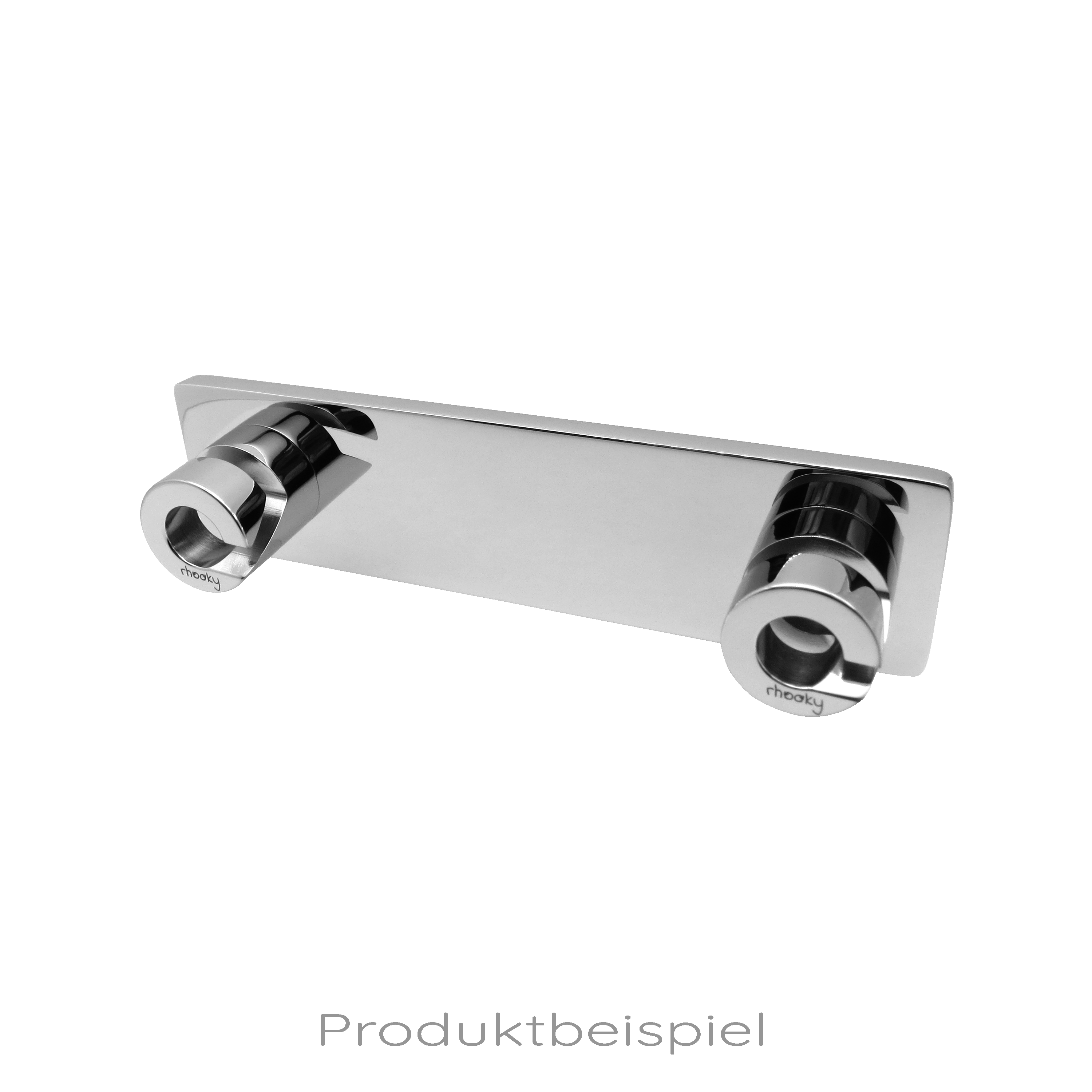 Die breite Befestigungsplatte kombiniert zwei rhooky hooks zu einer stylischen, eleganten Einheit. Die optisch von der Platte abgesetzten rhooky hooks erhalten einen passend integrierten, prunkvollen Anblick.